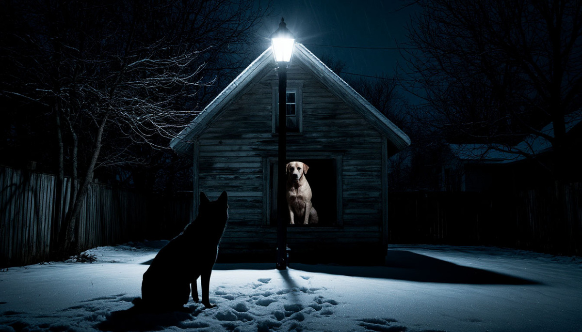 Тварь, ослепленная, металась по крыльцу, врезаясь в перила. Она пыталась закрыть глаза, но собачьи лапы не слушались. В итоге она спрыгнула в снег и, ломано перебирая конечностями, рванула в тень под сарай.