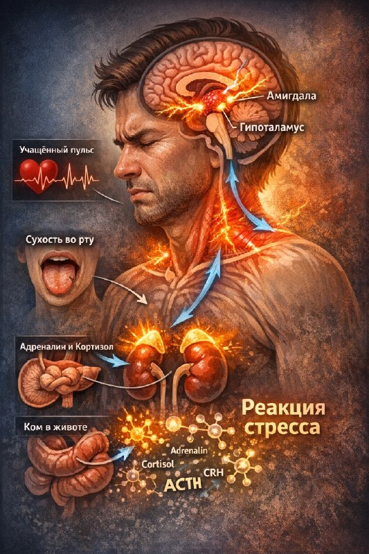 Эти телесные маркёры возникают не случайно — это результат молниеносного химического салюта, который запускается глубоко в мозге. Разберём, как он устроен и, главное, как его прервать.