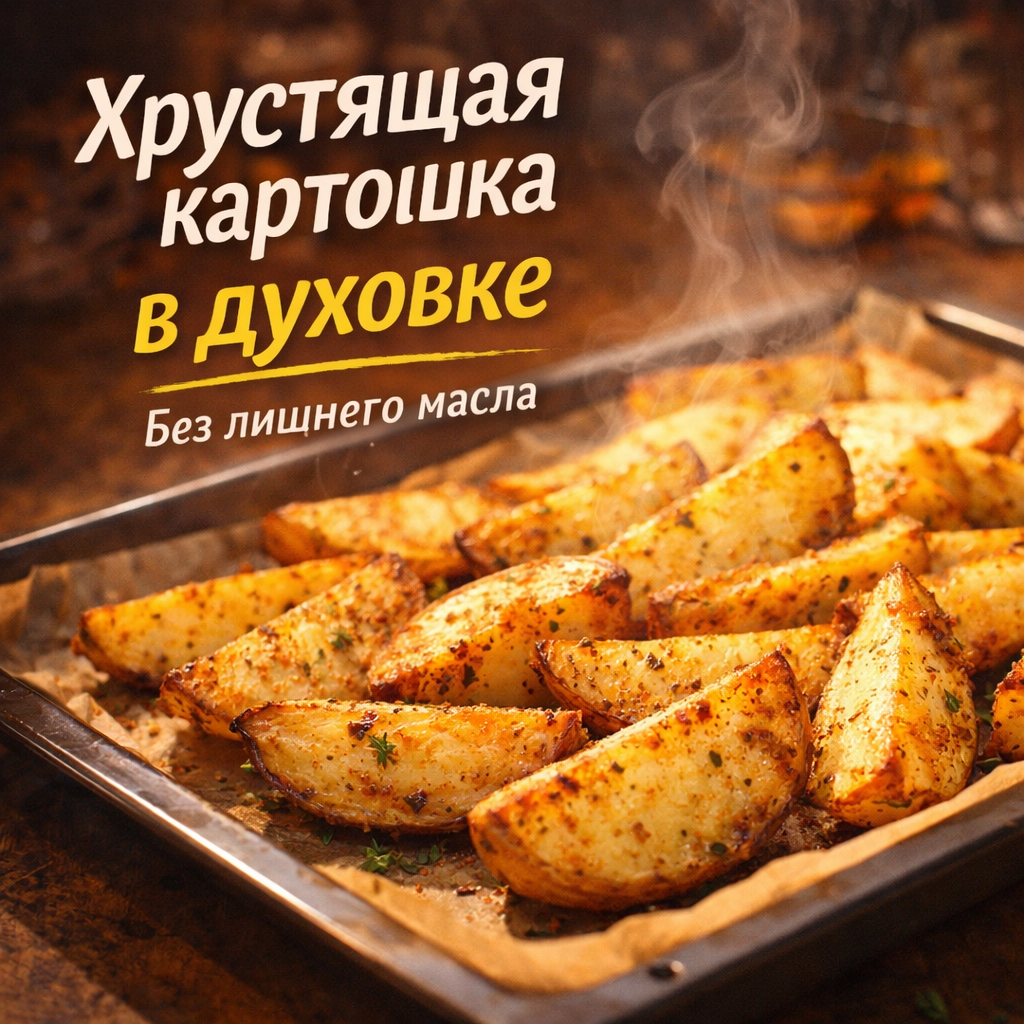 Оказалось, всё решает один простой шаг перед запеканием. Теперь этот рецепт у нас идёт и как гарнир, и как самостоятельное блюдо. Ингредиенты (на 3–4 порции): Такую картошку у нас съедают прямо с противня, без соусов. Если хотите усилить вкус — добавьте в конце немного тёртого сыра или свежую зелень.
