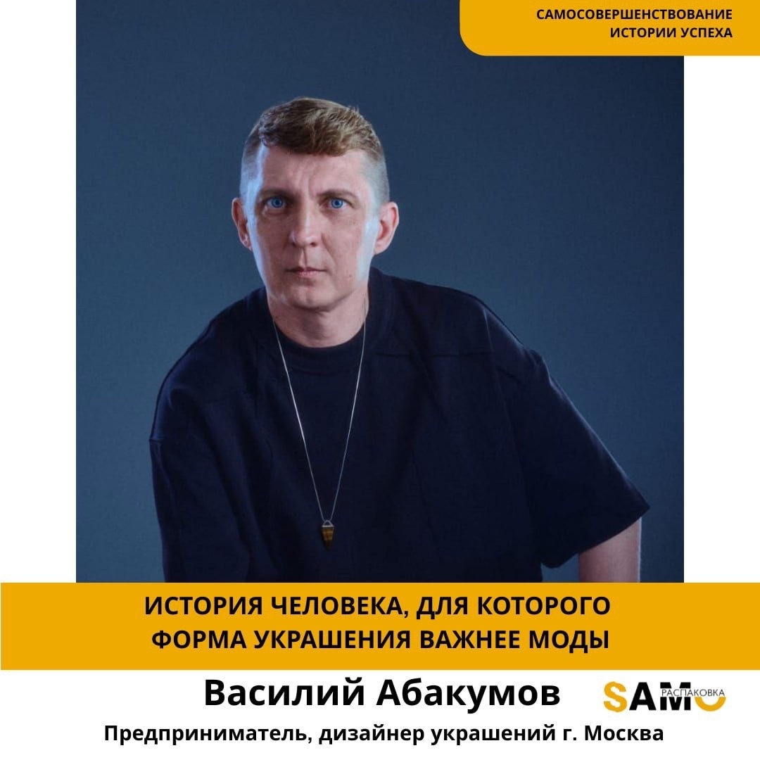 Сегодня мода меняется так быстро, что в этом потоке легко потерять ориентиры. Тренды сменяют друг друга, формы становятся громче, смыслы – короче. Все чаще важен эффект, а не ощущение. На этом фоне особенно заметны люди, которые выбирают другой путь. Не спорят с модой и не бегут за ней, а работают глубже – с формой, балансом и внутренним чувством меры. 🧩 Василий Абакумов – основатель бренда украшений Abakumov, креативный дизайнер украшений, создающий лимитированные коллекции и сотрудничающий с прогрессивными брендами одежды. Его работы часто становятся финальным штрихом образа, тем самым элементом, который собирает всю концепцию воедино. Но прежде чем украшения Василия Абакумова стали узнаваемыми, был долгий путь ремесла и наблюдений. Василий пришёл в дизайн украшений не ради самопрезентации и не как к бизнес-проекту, а как в ремесло, в котором важны точность, пропорции и честность материала. Там, где ошибка чувствуется сразу – и визуально, и физически.