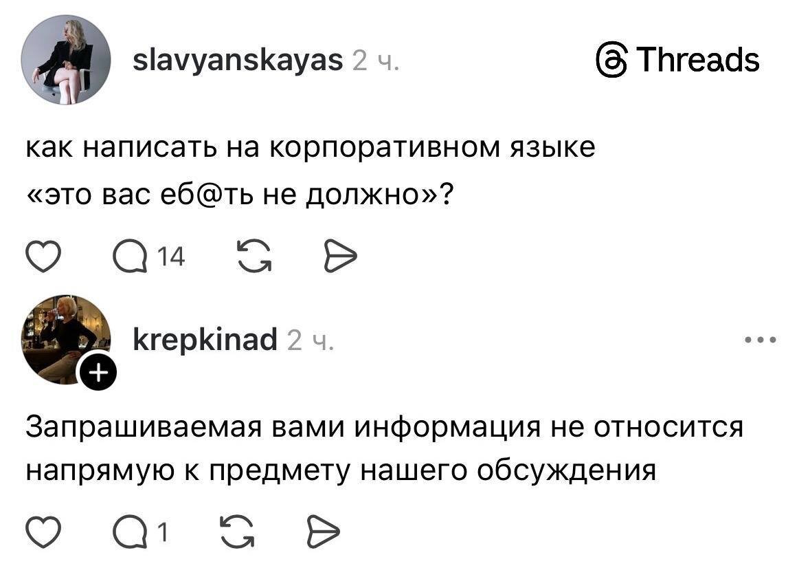 ⚡️Пользователи Threads собрали топ фраз, которые заменят нецензурную лексику во время диалога с сотрудниками или партнёрами. Забираем в сохранёнки.