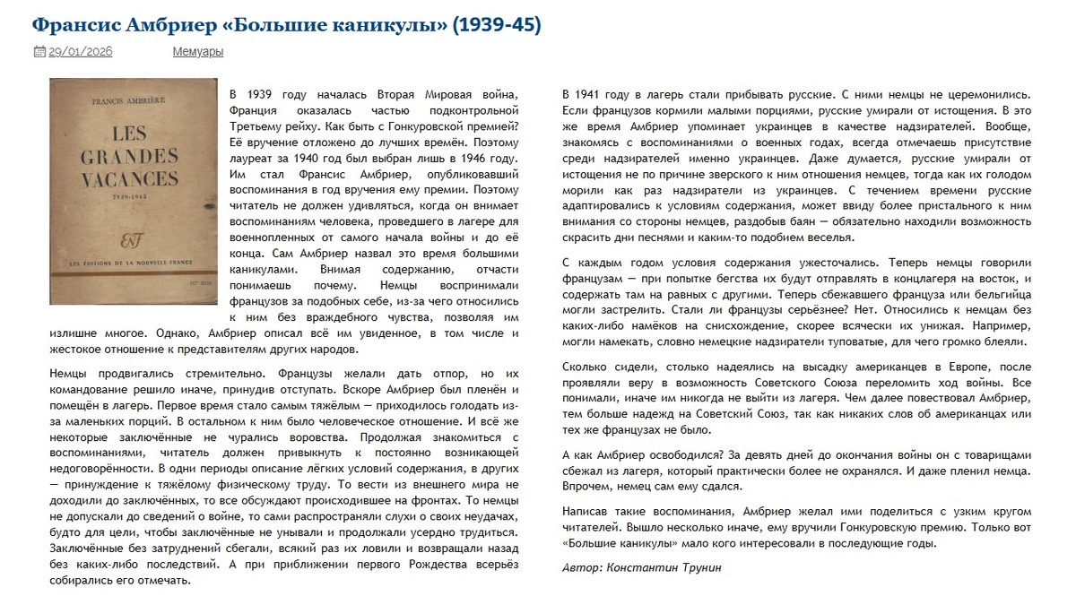 Франсис Амбриер "Большие каникулы" (1939-45) | Критика