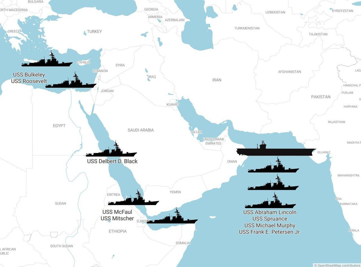 Американцы направили ракетный эсминец USS Delbert D к Ирану. Сейчас в регионе находятся десять американских кораблей: атомный авианосец с 70 самолётами и ударной группой кораблей, а также шесть эсминцев с ракетами «Томагавк». Ранее обычное присутствие ограничивалось 1–2 эсминцами и иногда авианосцем.