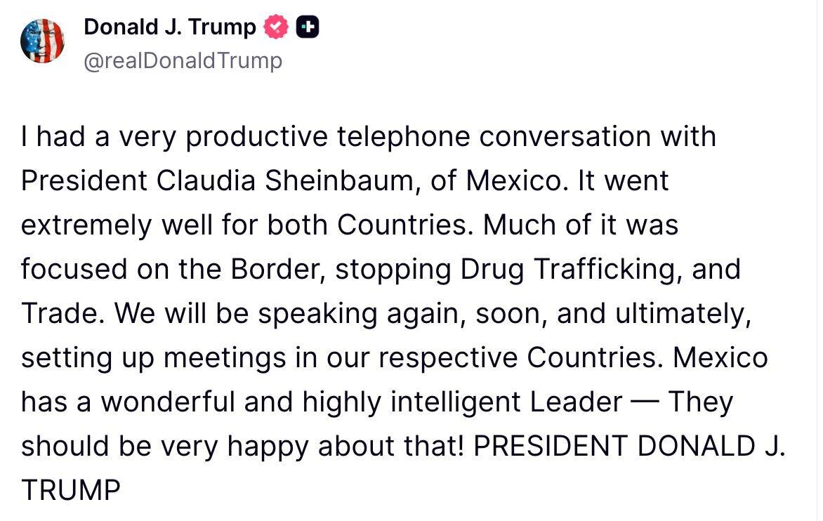 Trump had a ‘PRODUCTIVE’ call with Claudia Sheinbaum