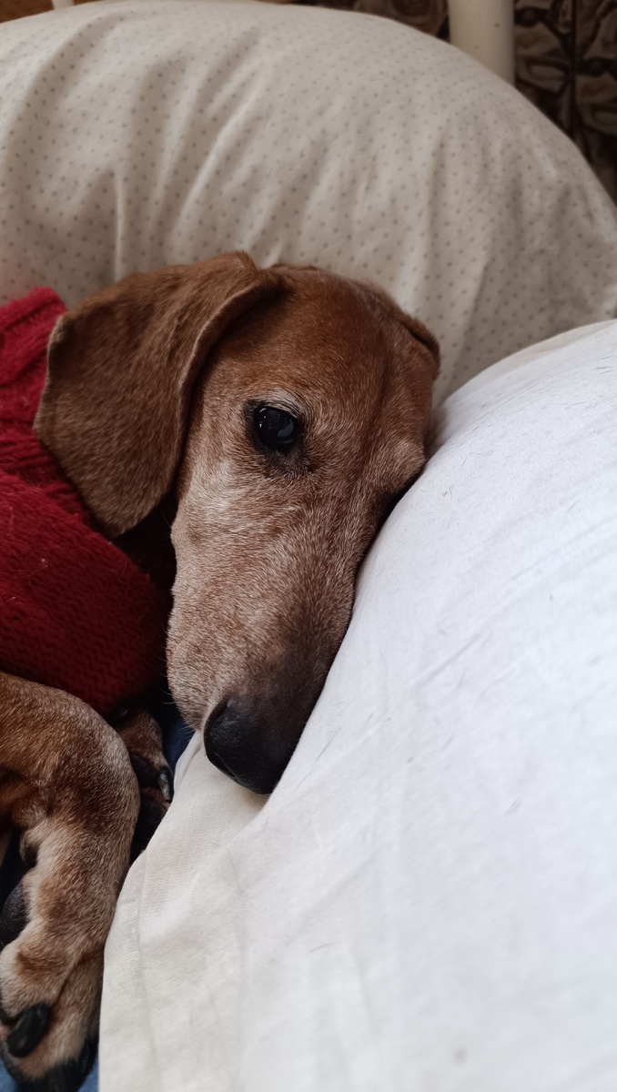 Вот хочу рассказать про Кнопочку. Самая старшая наша "пенсия". Чуть больше, чем через месяц ей исполнится 14 лет. 14 счастливых лет эта собака наполняет мою жизнь эмоциями. А последние полгода она очень прочно заняла жизненную позицию своей матери, Капельки. Теперь она главная мозгоклюйка нашего дома. Гены, они такие. Чай дочь