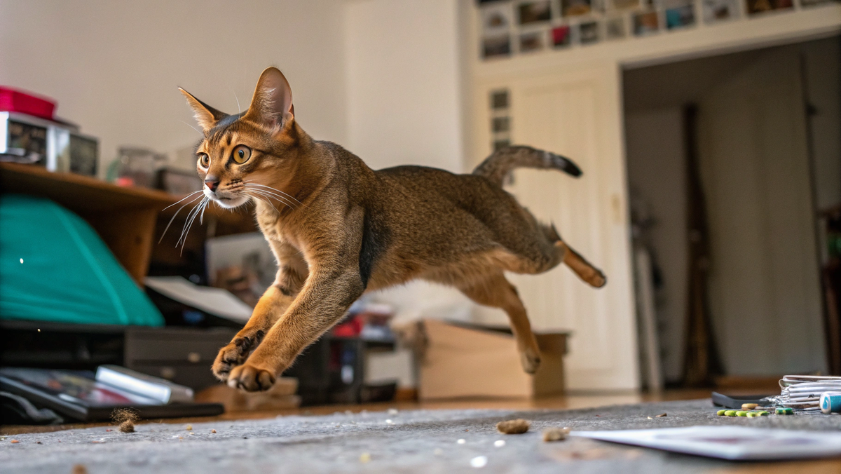 Абиссинские кошки никогда не сидят на месте. Они носятся, прыгают, лазают, исследуют каждый сантиметр квартиры. Не час в день. Постоянно. Если абиссинец не спит, он двигается. Остановить его невозможно. Это не игривость котёнка, которая проходит с возрастом. Это темперамент породы на всю жизнь.