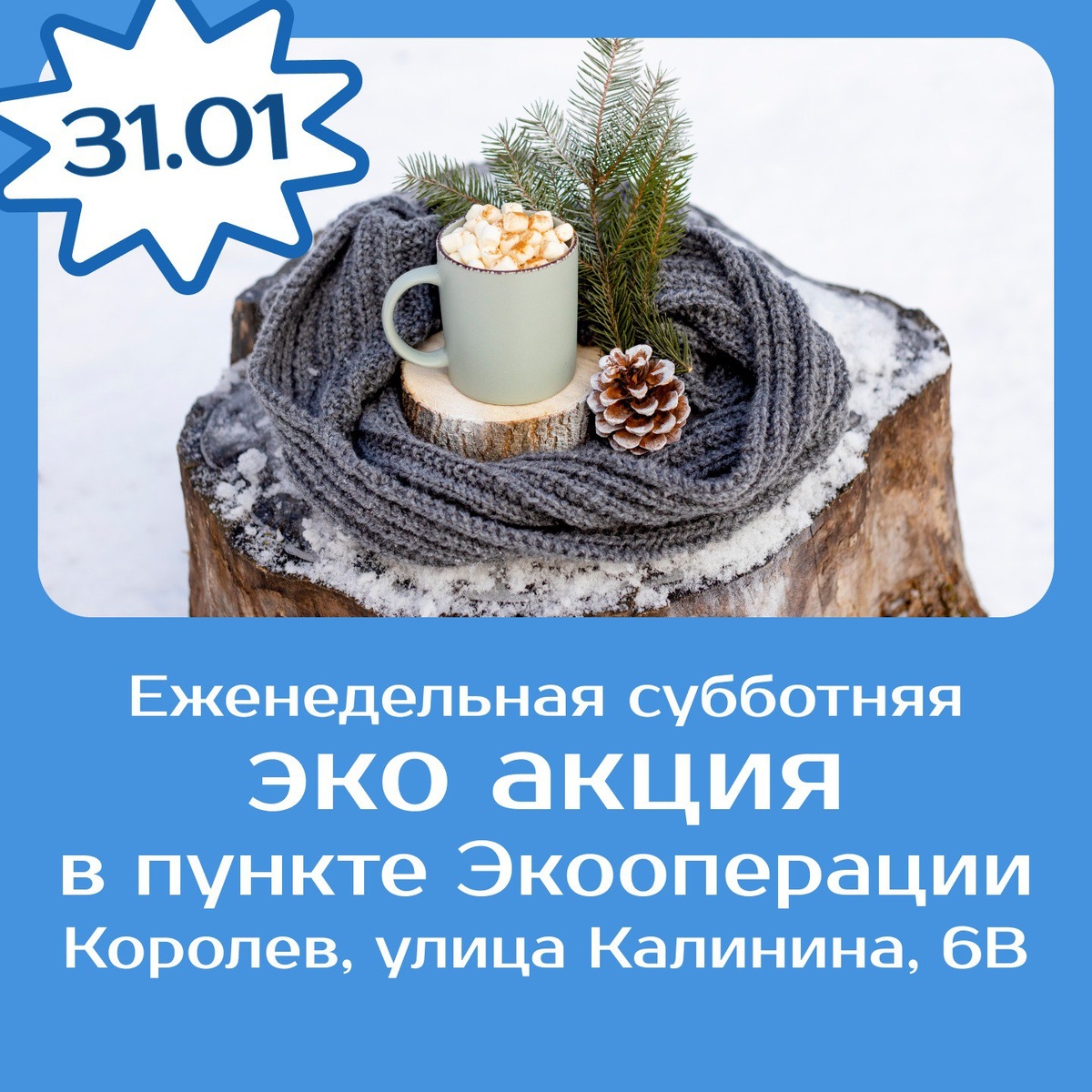 : СБ 31.01📍 Королёв Экопункт сообщества "Экооперация Мытищи-Королёв". Адрес: улица Калинина, 6В Вход напротив медклиники "Пластика С" Время: с 11:00 до 13:00 Инструкция по приему вторсырья Задать вопрос вы можете организатору акции Наталье: +7 916 350-55-00 или в группе сообщества в Телеграм. Желаем провести время на выходных с пользой и отличным настроением 👍