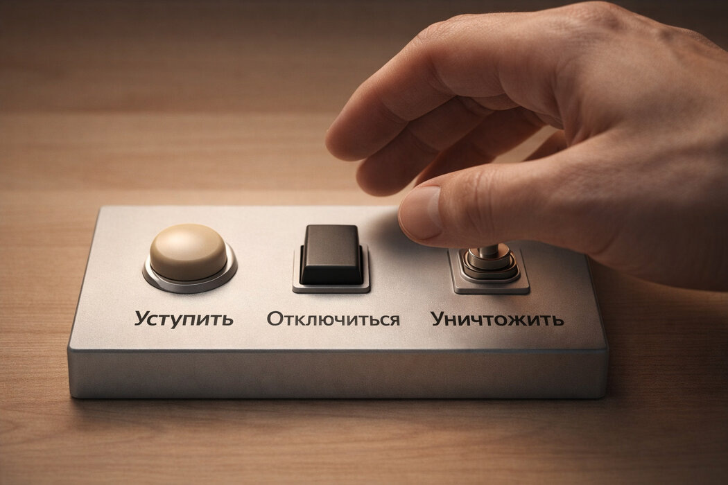 Чтобы справиться с этой волной невыносимых чувств, психика запускает один из трех защитных режимов - капитуляцию, избегание или гиперкомпенсацию послания схемы. Эти режимы - не сознательный выбор, а бессознательный, автоматический копинг. В отличие от трех стилей реакции на реальную угрозу (бей, беги, замри), это реакция на воображаемую угрозу, которую генерирует схема.