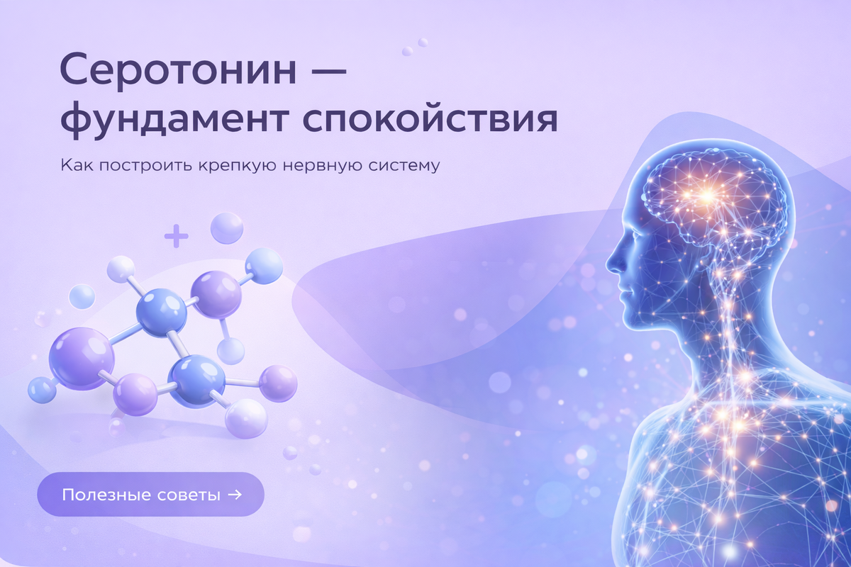 Спокойствие начинается не с мыслей, а с биологии Когда человек ищет внутреннее спокойствие, он чаще всего начинает с головы: старается думать позитивно, избегать конфликтов, контролировать эмоции. Но нервная система устроена глубже. Ее устойчивость начинается не с убеждений, а с биохимии. И ключевую роль здесь играет серотонин. Это вещество не делает жизнь «радостной по умолчанию». Оно делает ее устойчивой. Серотонин помогает мозгу правильно оценивать происходящее, не воспринимать каждый раздражитель как угрозу и не застревать в тревожных сценариях. При нормальном уровне серотонина человек способен выдерживать нагрузку, принимать решения и восстанавливаться после сложных периодов. При дефиците - даже мелкие события перегружают нервную систему. Именно поэтому состояние постоянного напряжения, которое многие считают нормой, на самом деле сигнал о том, что фундамент дал трещину. Как нервная система теряет устойчивость в современной жизни Современный ритм буквально учит организм жить в р