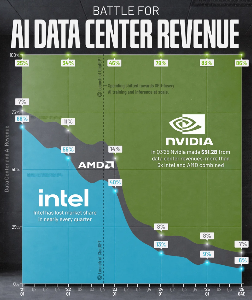 Пятилетняя битва за выручку дата-центров ИИ. Как $NVDA стала монополистом?