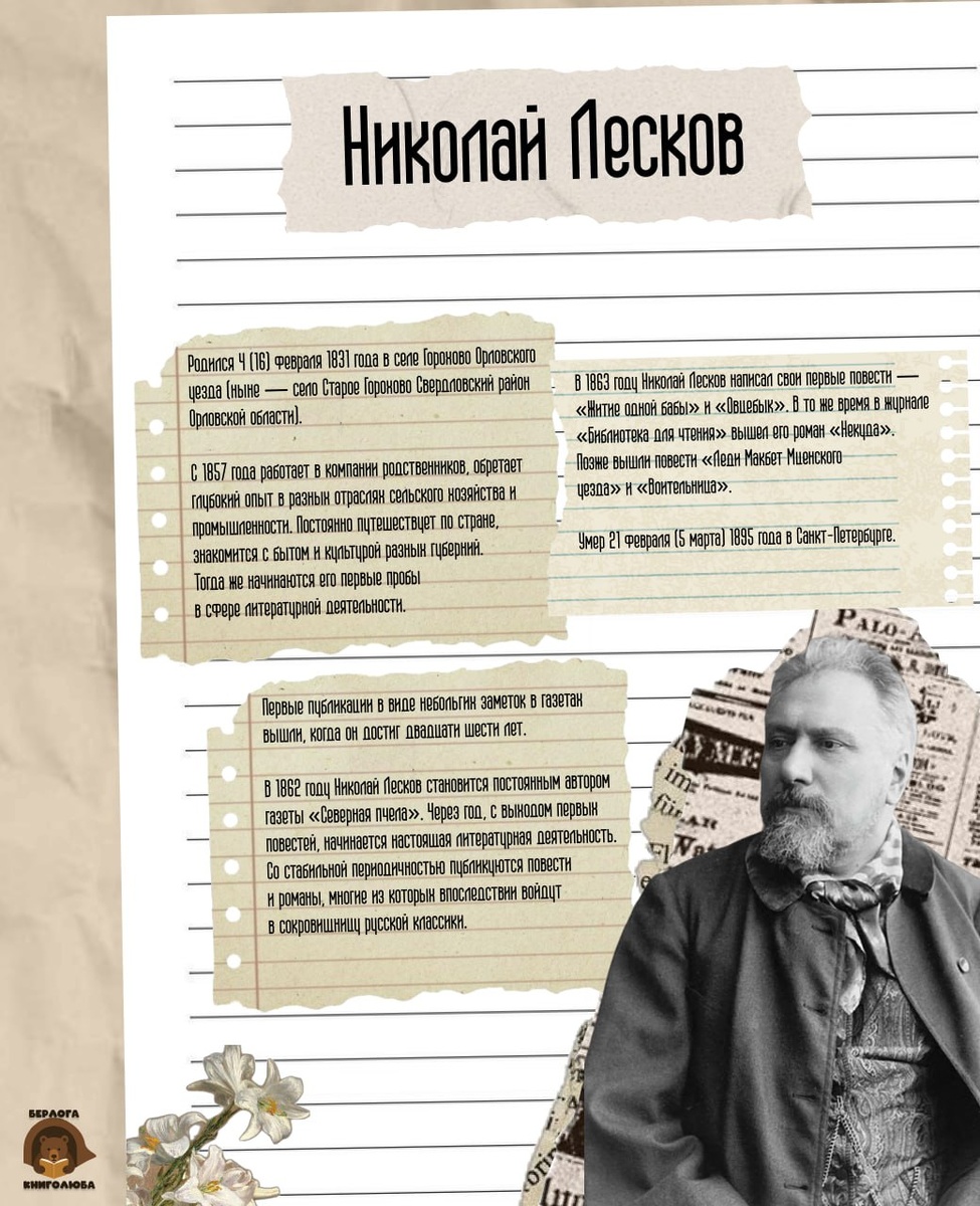 🖊 Николай Семёнович Лесков — русский писатель, публицист, литературный критик. 📚 Знакомимся с фактами из биографии из жизни писателя. А с аннотацией на повесть «Левша» уже можно ознакомиться в канале. #БерлогаКниголюба #Берлога_биография