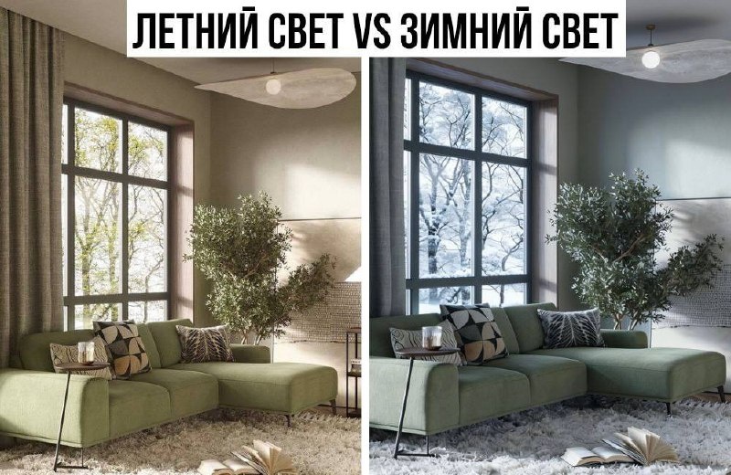 ▪️Естественный свет зимой делает интерьер сероватым. СОВЕТЫ ПРОФИ Цвет света Компенсируем: используем лампы с теплым светом (2700–3000К). Это поможет избежать неуютной атмосферы, добавит тепла. Освещение Здесь важна ярусность освещения. Использование бра, торшеров, настольных ламп и гирлянд . Окна Тяжелые шторы заменить на легкие ткани, сетчатый тюль, чтобы не препятствовать попаданию света. Контрастные акценты На фоне светлых интерьеров зимой выигрышно смотрятся черные, деревянные элементы освещения, подчеркивающие структуру пространства. Декор Используйте зеркала для отражения света от окон и светильников. Текстиль Пушистые ковры, шерстяные пледы, меховые покрывала — помогут сделать дом более уютным. Цвет Правильная палитра способна визуально сделать комнату теплее. Охра, терракот, янтарный, природная зелень, марсала, сливовый. Такие изменения помогают сделать дом более уютным, комфортным и теплым, компенсируя отсутствие солнечного света.