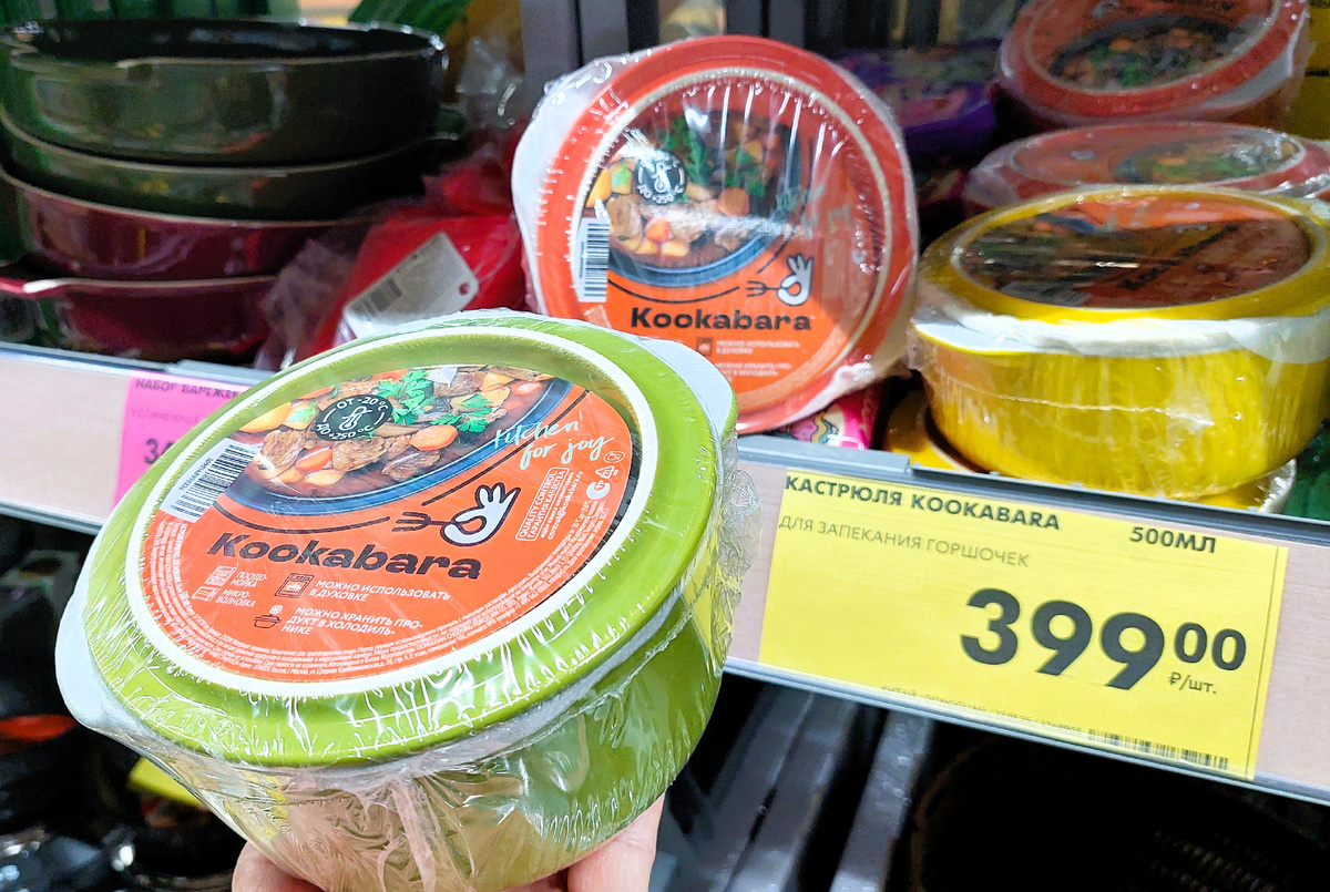 Впервые встречаю на полках нашего Чижика такую необычную новинку - Горшочек для запекания в виде малышки- кастрюльки. Кастрюля KOOKABARA для запекания - горшочек 500мл. Жаропрочная керамика. Цена 399 рублей.