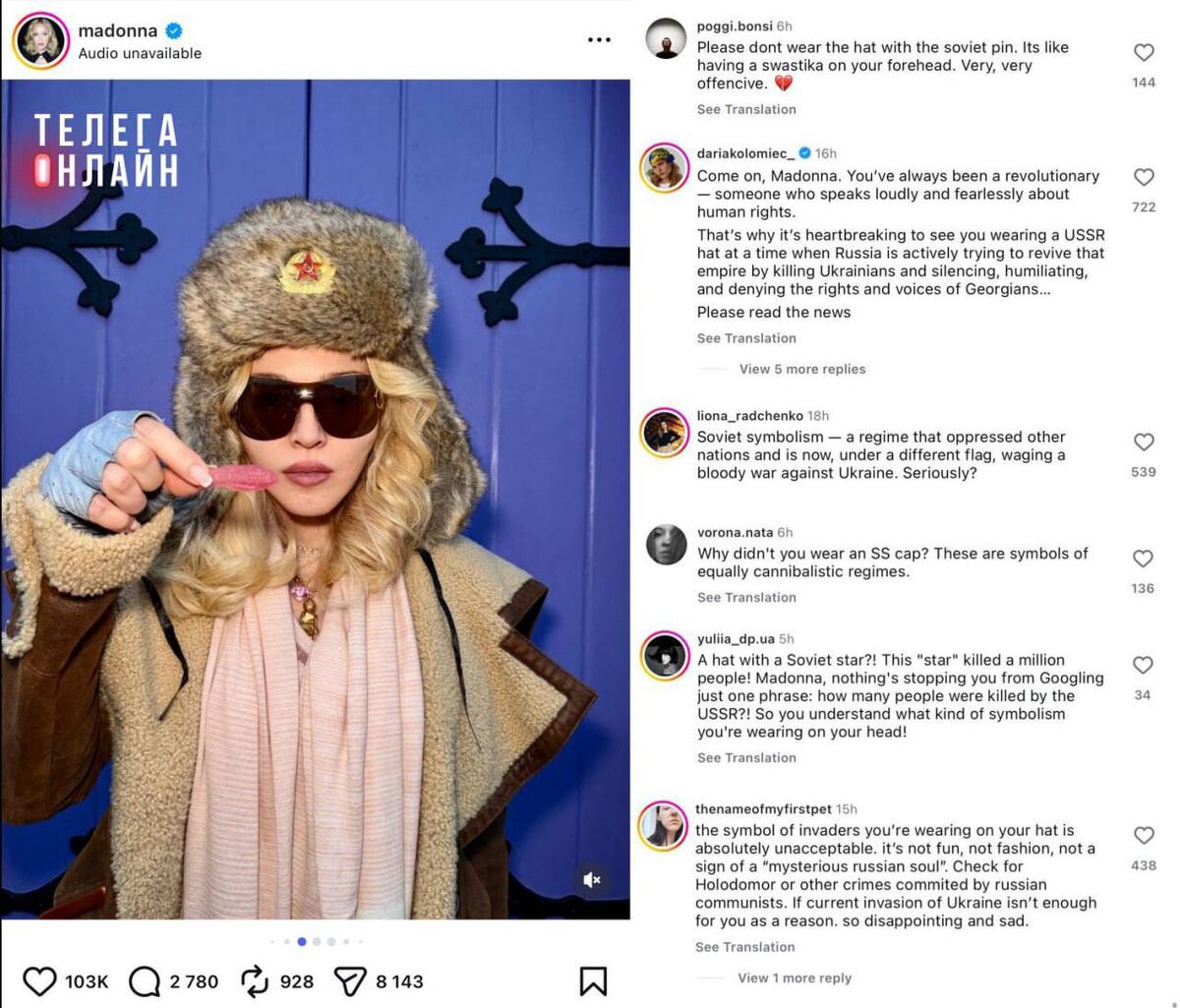 Всемирная известность не уберегла Мадонну от набега украинских патриотов в комментарии под фото в «символе советских оккупантов».