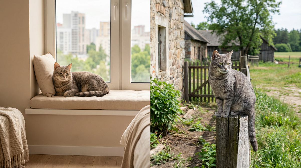 За двадцать лет я видела сотни котов, которых перевезли из города в деревню "для лучшей жизни". Большинство прожили меньше, чем прожили бы в городской квартире. Сегодня расскажу, где коту действительно лучше, какие риски есть в обоих вариантах и почему длительность жизни важнее иллюзии свободы.