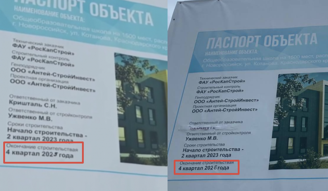 Мысли о том, что что-то пошло не так (а не просто рабочие - лентяи) у жителей начали появляться тогда, когда пост об отставаниях от графика опубликовал зам. руководителя департамента строительства Краснодарского края Артем Моисеев. Позже выяснились некоторые интересные обстоятельства. Судя по всему, сам проект был подготовлен не совсем четко, что повлекло за собой бОльшие временные затраты на стадии рассмотрения и утверждения документации. Уже после прохождения госэкспертизы выяснилось, что на месте будущей школы более 5 тыс. лет назад было древнее поселение. По информации СМИ, стараниями надзорных органов строительство школы было приостановлено. Но, судя по тому, что глава Новороссийска несколько раз говорил о том, что Южном районе появятся две школы, выходит, объект все-таки достроят. Но это неточно... Пока на паспорте объекта в очередной раз с помощью замазки/корректора дата окончания строительства меняется – сначала на пятерку (2025 год), теперь – на шестерку (2026 год). Интересно, насколько такой способ является законным? Неужели у застройщика нет денег на новый паспорт объекта?