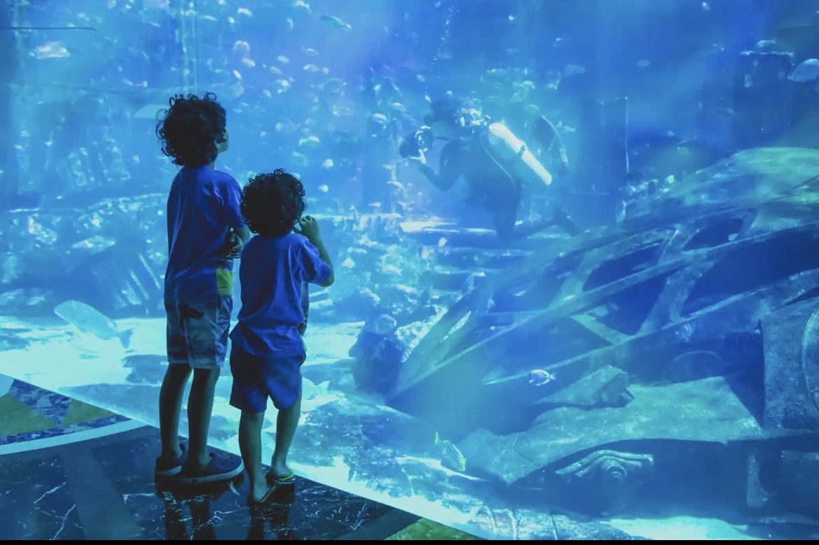 Аквариум в самом огромном торговом центре на планете поражает воображение с первых минут. Здесь собраны морские обитатели со всего мира. Их здесь более 100 видов.