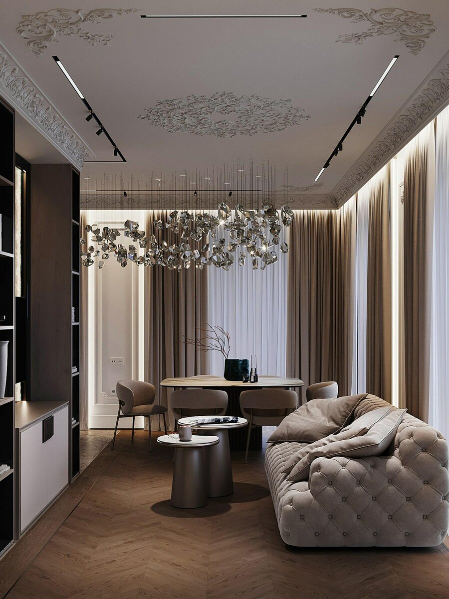 TS Design Studio мы уделяем освещению особое внимание на самом раннем этапе проектирования. Свет — это не просто функция, а инструмент, который формирует атмосферу и определяет, как будет восприниматься пространство. Одной люстры по центру потолка недостаточно. Свет должен быть многоуровневым: общий, локальный, акцентный. Только тогда пространство становится функциональным и атмосферным. Разбираем, как устроен правильный свет и как его спроектировать для разных зон. Что это: базовое равномерное освещение всего помещения. Позволяет ориентироваться в пространстве, создаёт фоновый комфорт. Источники: Важно: общий свет не должен быть слишком ярким или холодным. Что это: направленный свет для конкретных задач — чтения, готовки, работы, нанесения макияжа. Он ярче общего и сфокусирован на рабочей зоне. Источники: Важно: локальный свет должен быть регулируемым по направлению или интенсивности. Что это: декоративный свет, который выделяет объекты, создаёт глубину, формирует настроение. Он не фу