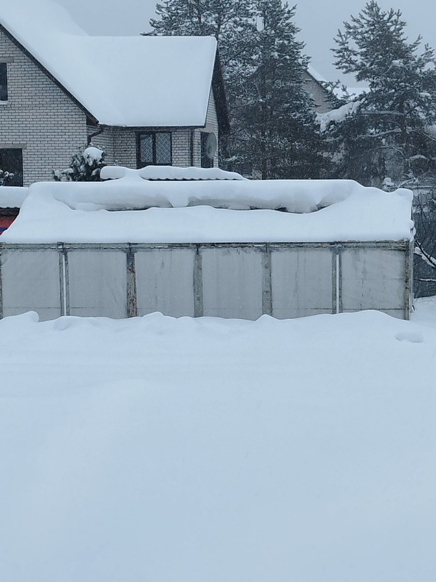 У нас в этом году какой-то снежный апокалипсис. Не успеваю бороться со снегом. Регулярно приходится удалять с крыши теплицы.