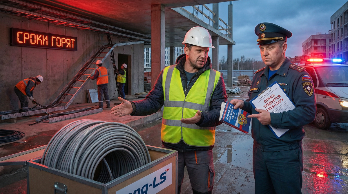 Объект почти сдан, монтаж выполнен по проекту, сроки на пределе - и на проверке пожарного надзора выясняется: кабель выбран неверно. Формально он нг-LS, но для систем пожарной защиты этого недостаточно. Итог - предписание, переделка электрики и срыв сроков.