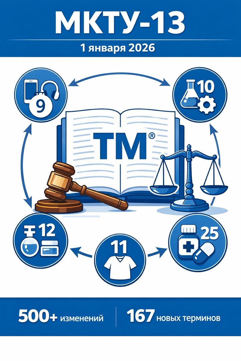 С 1 января 2026 года вступила в силу 13-я редакция Международной классификации товаров и услуг (МКТУ-13). Предпринимателям, планирующим регистрацию товарного знака, нужно как можно быстрее разобраться в новых правилах: более 500 правок затронули названия классов, алфавитный перечень товаров и услуг, а также порядок экспертизы заявок. В этом гиде мы подробно разберём ключевые изменения, их влияние на выбор классов и расскажем, как избежать типичных ошибок. • 500+ изменений и дополнений по итогам 35-й сессии Комитета экспертов Ниццкого союза
