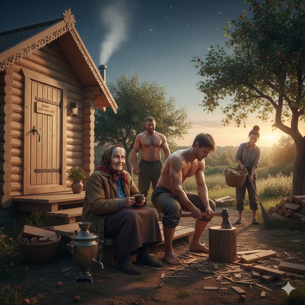 Марья Степановна опустилась на табурет. Обида не была острой, как в молодости. Она была тяжелой, как мокрое одеяло. Она вспомнила, как они приехали три дня назад — яркие, красивые, пахнущие дорогим парфюмом и энергией. Артем и его девушка Снежана, и младшая внучка Лика. Марья светилась от счастья: достала лучшее постельное белье, затопила ту самую баню…