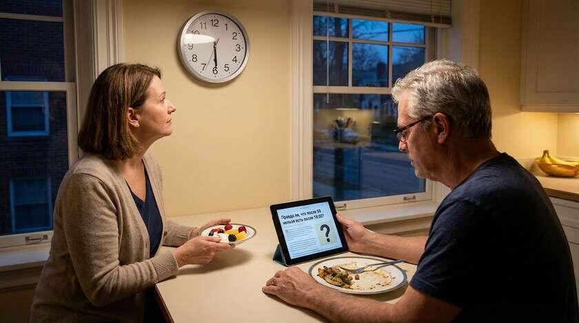 Миф про "нельзя есть после 18:00" — это упрощение, которое превратилось в догму. Научных оснований для конкретного часа нет.