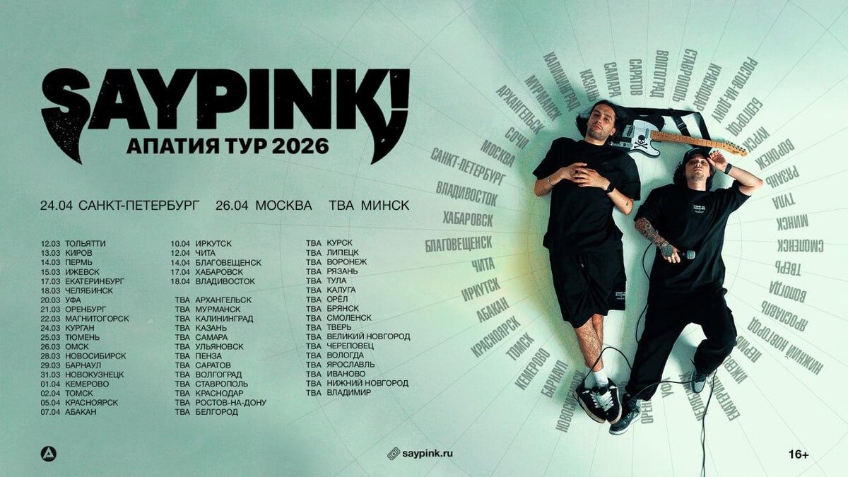 🎤 – saypink! 📍– Есть дата у 26 городов: Тольятти, Киров, Пермь, Ижевск, Екатеринбург, Челябинск, Уфа, Оренбург, Магнитогорск, Курган, Тюмень, Омск, Новосибирск, Барнаул, Новокузнецк, Кемерово, Томск, Красноярск, Абакан, Иркутск, Чита, Благовещенск, Хабаровск, Владивосток, Санкт-Петербург, Москва. Оставшаяся часть городов с афиши – концерты осенью. 🗓 – 12 марта – 26 апреля 💵 – TBA 🔗 – бронь билетов (16+) ⏰ – старт продаж – TBA #концерты #билетынаконцерт #saypink #тольятти #киров #пермь #ижевск #екатеринбург #челябинск #уфа #оренбург #магнитогорск #курган #тюмень #омск #новосибирск #барнаул #новокузнецк #кемерово #томск #красноярск #абакан #иркутск #чита #благовещенск #хабаровск #владивосток #санктпетербург #москва 👉 Список концертов: январь • февраль • март @est_prohodka