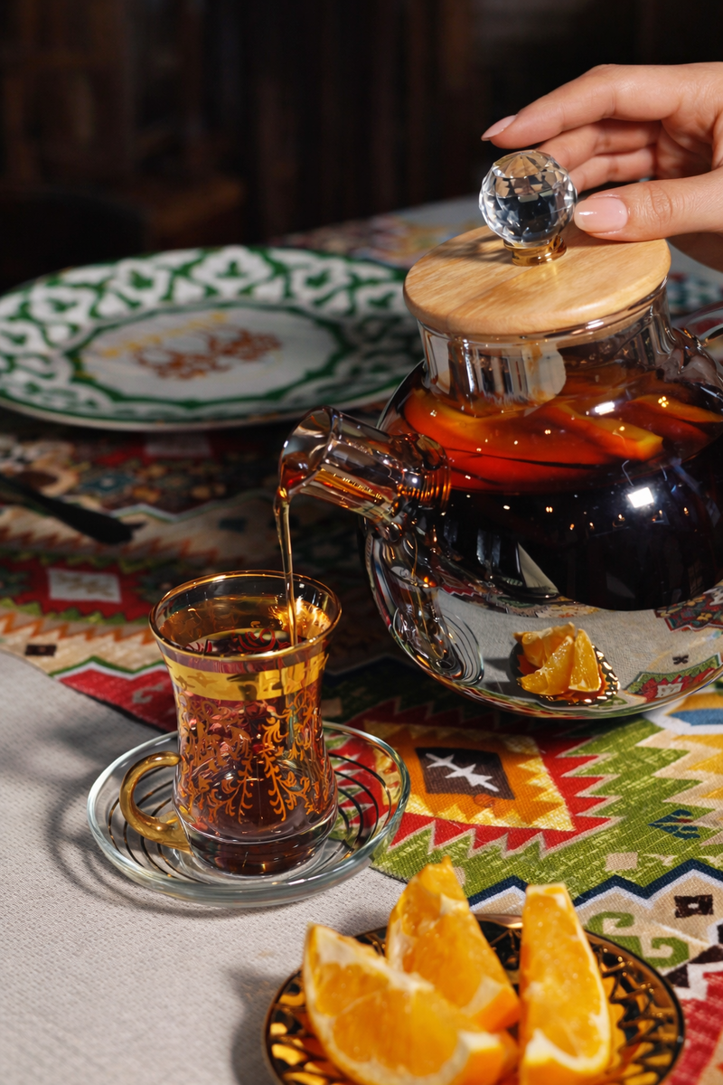 2. Символ щедрости и долгого общения. Половина пиалы — это не скупость, а мудрость. Гость выпьет, и хозяин тут же дольет ему свежего чая. Этот ритуал может повторяться несколько раз, символизируя, что дорогому человеку здесь всегда рады, его чаша будет полна, а общение — долгим и сладким. Пустая пиала — знак, что визит окончен. А здесь он только начинается!