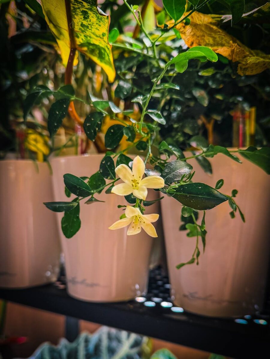 Иногда это происходит неожиданно. Вроде бы ничего не менялось, а в воздухе появляется лёгкий, но при этом яркий цветочный аромат. Такой, что хочется остановиться и оглядеться. И да — это значит, что зацвела мурайя 🌿 Это уже второй кустик в моей жизни. Первый, честно скажу, я угробил прошлой зимой — не сошлись мы тогда в ожиданиях и условиях. Но недавно в продаже попался маленький, захудалый экземпляр. Прошёл бы мимо… но решил попробовать снова. Выходить. И, кажется, мы договорились 😊 🌸 Что за растение — мурайя? Мурайя (Murraya paniculata) — вечнозелёный кустарник из семейства рутовых, родственник цитрусовых. И это чувствуется сразу: её аромат часто сравнивают с апельсиновым цветом — нежный, сладкий, очень чистый. ✨ Интересные факты: • Цветки мурайи могут пахнуть сильнее вечером и ночью. • Цветёт она часто и охотно, иногда почти без перерывов. • После цветения образует маленькие красные ягодки — декоративные, но несъедобные. • В Азии мурайю считают растением гармонии и внутреннего