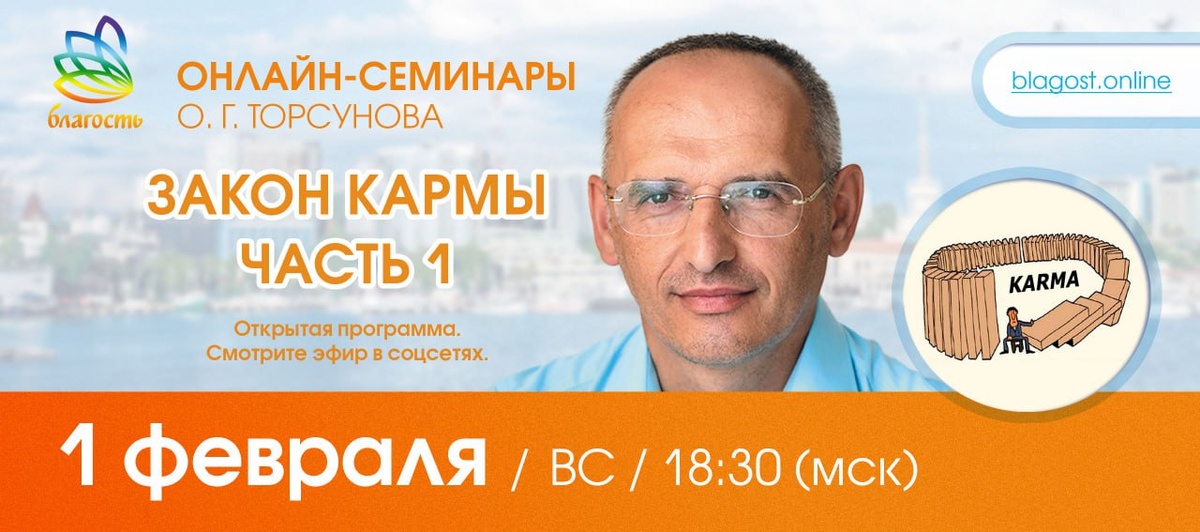Приглашаем на открытый онлайн-семинар Олега Геннадьевича Торсунова "ЗАКОН КАРМЫ, ч.1