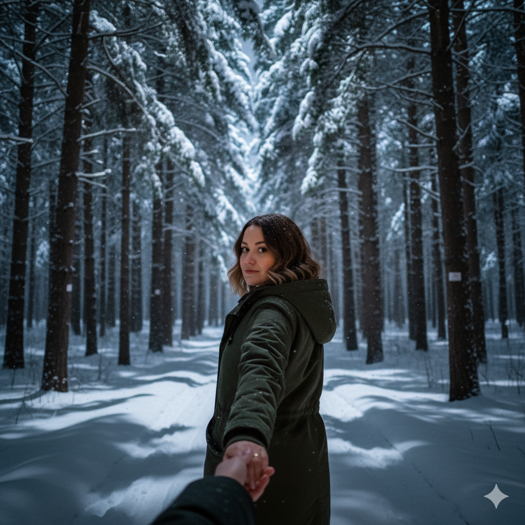 Зимний сезон предоставляет уникальные возможности для создания атмосферных романтических снимков. Визуальный тренд «Follow Me» («Следуй за мной» или "Иди за мной"), который приобрел мировую известность благодаря фотопроекту Мурада и Натальи Османн, сегодня переживает новую волну популярности благодаря технологиям генеративного ИИ.