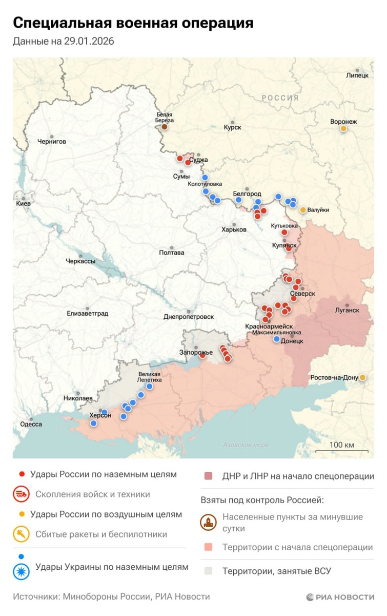 Обстановка и главные события на 29 января: ▪️Российские войска освободили населенный пункт Белая Берёза в Сумской области. ▪️Россия передала Украине 1000 тел солдат ВСУ и получила 38 тел погибших бойцов, сообщил Мединский. ▪️ВСУ за сутки потеряли до 1150 военнослужащих, танк и 22 бронемашины. ▪️Средства ПВО России уничтожили 9 БПЛА ВСУ над территорией страны за ночь. ▪️Орбан объявил о начале национальной петиции против финансирования Украины. ▪️Чехия не имеет средств для финансирования инициативы по поставке боеприпасов на Украину, заявил глава чешского МИД. ▪️Глава дипломатии ЕС Каллас не поддержала идею Зеленского о создании европейской армии с участием ВСУ @dlon Новости от Dlon. Подпишись