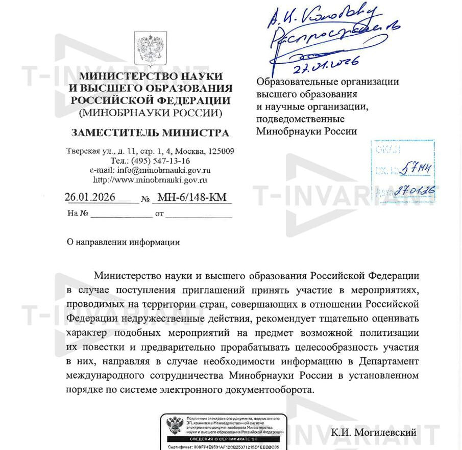 Российские чиновники призвали учёных обдумать поездки на научные конференции в страны, которые не являются дружественными