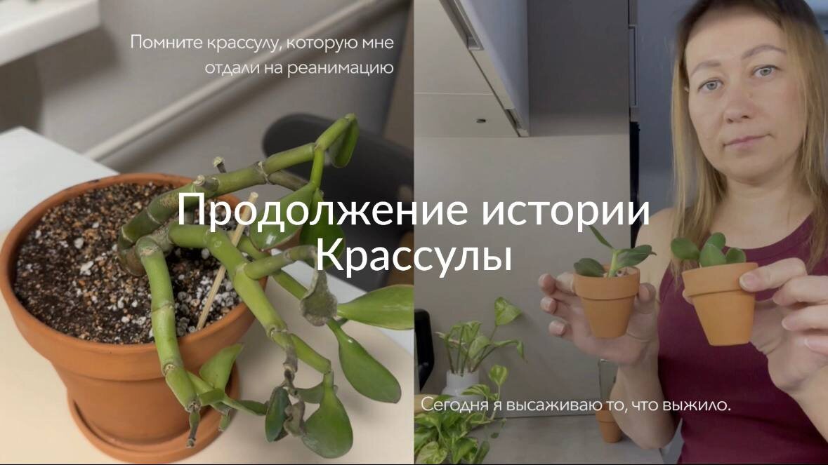 Рассказывала об этой истории здесь. Тогда было понятно почти сразу: - спасти её полностью, скорее всего, не получится. Гниль уже была глубоко, и этот процесс редко удаётся остановить на таком этапе. Я всё равно взялась. Не из иллюзий и не из желания «сотворить чудо». Скорее из упрямства🤷♀️ В итоге крассулу целиком сохранить не удалось. Гниль пошла дальше. И в таких ситуациях важно не искать виноватых и не задаваться вопросом «что я сделала не так». Если растение попадает к тебе уже в тяжёлом состоянии - не всё зависит от тебя. Но не всё погибло. Остались три черенка и несколько листьев. И спустя почти 2 месяца они дали корни. Для меня это всегда очень важный момент. Значит система работает. И нужно вовремя увидеть, где жизнь ещё есть, и работать именно с этим. Сегодня я высаживаю то, что выжило. Создаю условия и дальше просто наблюдаю, как процесс будет протекать. Но и конечно же поддерживать витаминными коктейлями. Если хотите: проверить состояние растения или понять, пора