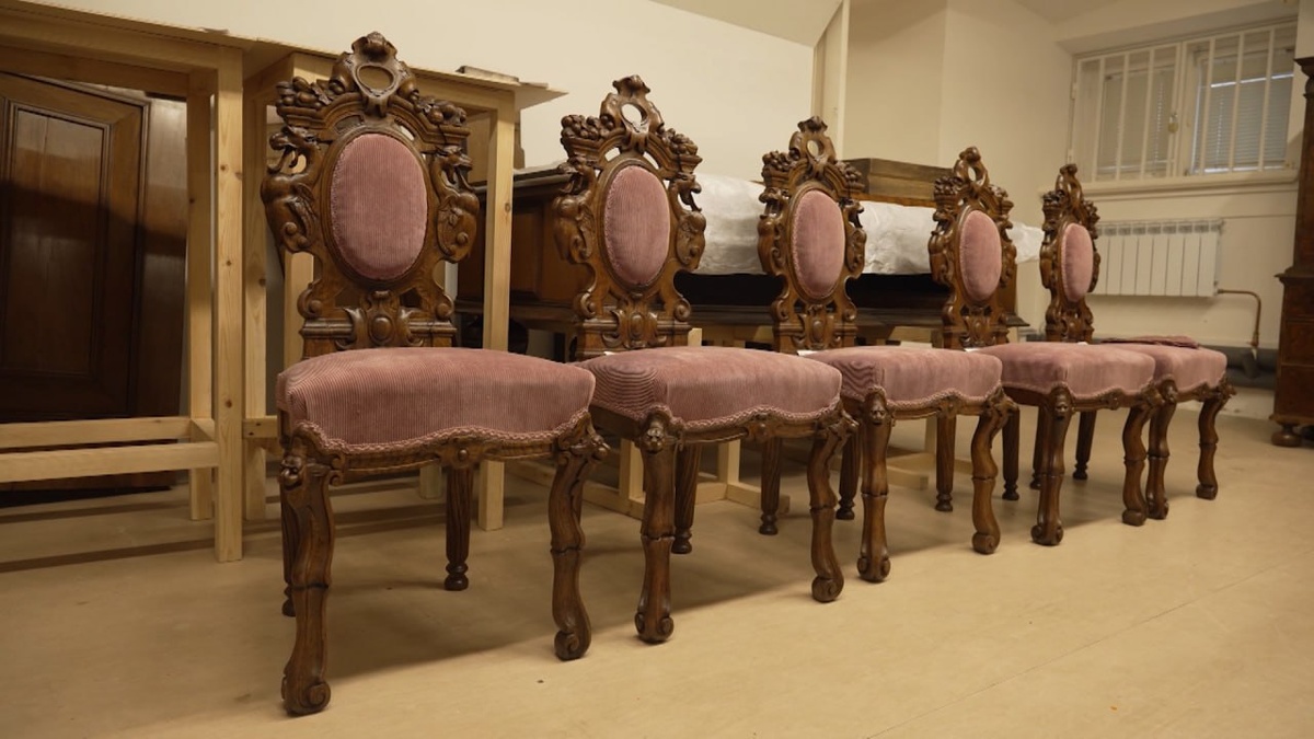 🪑Пять стульев Псковского музея, пострадавших от пожара в 2022 году в усадьбе Римского-Корсакого в Любенске, вернулись после реставрации