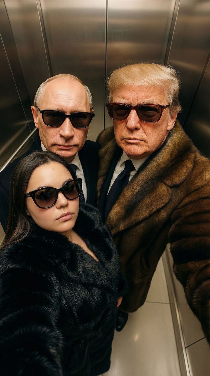😁😂 😀Заходим в этот бот или в этот 😀Выбираем "нейросети" 😀Нажимаем "Nano Banana" 😀Нажимаем "Nano Banana Pro" 😀Прикрепляем через скрепку свое фото и выбранный промпт 😀Наслаждаемся результатом😍 Стильный реалистичный портрет молодой девушки в лифте, селфи сверху, она в модных солнцезащитных очках, серьёзное и уверенное выражение лица, мягкий тёплый свет, кинематографическая атмосфера, высокая детализация, реалистичный стиль Добаьавь девушку к фото 2 в шикарной черной шубе пушистой , волосы прямые. 9:16