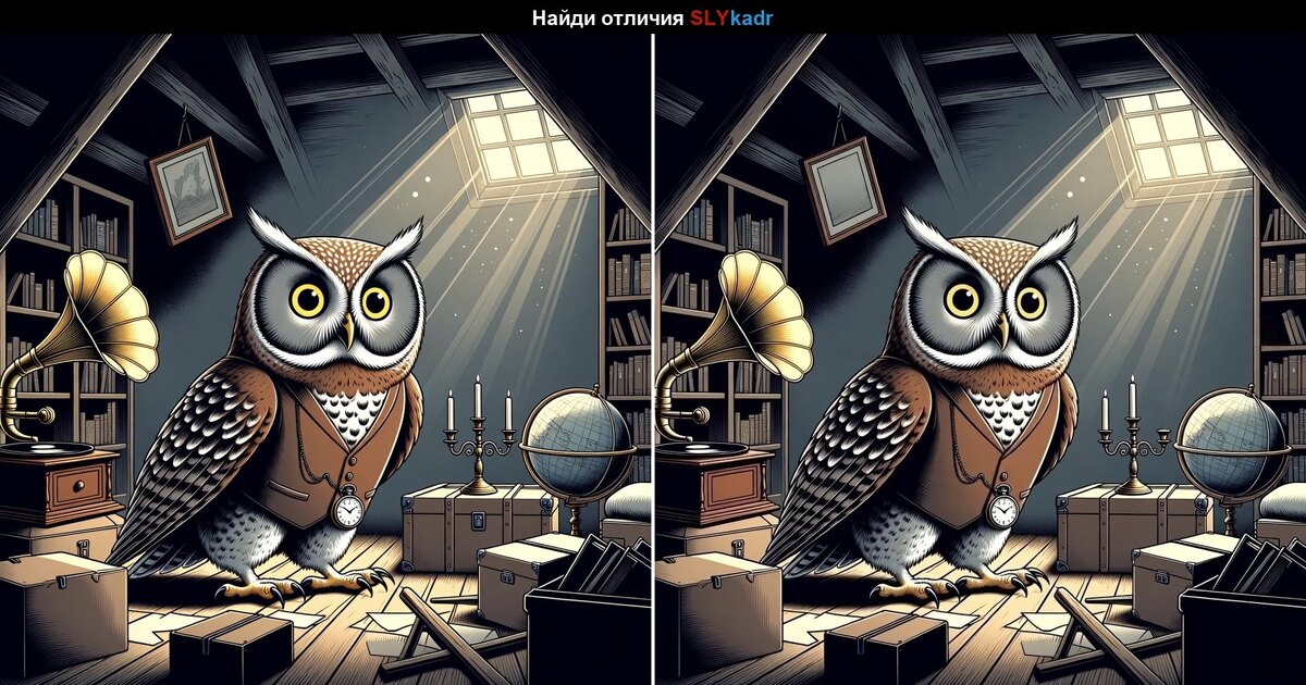 Мудрая сова уже всё заметила… А сможете ли вы найти все отличия между картинками? Не спешите — некоторые детали умеют отлично прятаться 😉 Ну как, получилось раскрыть дело? 🦉