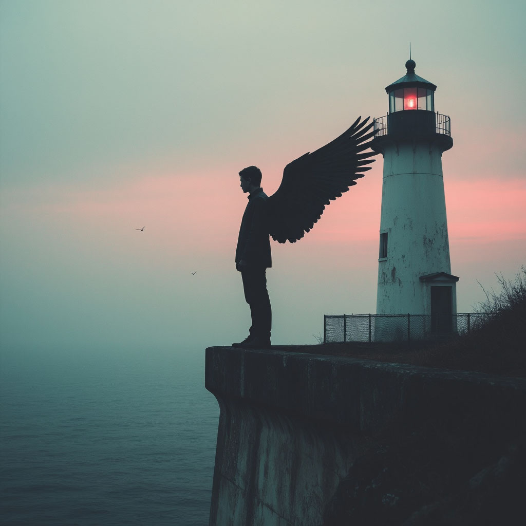 Я стоял на краю маяка, но теперь я был выше него. Мои крылья расправились, и ветер послушно подхватил меня. Я поднялся над морем, и мир вдруг стал другим. Я видел сквозь туман. Я чувствовал течения воздуха, как собственные нервы. Я знал: теперь я — часть этого места.