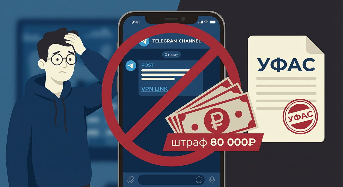 Впервые в России владельца Telegram-канала могут оштрафовать за обычную ссылку на VPN-сервис. Вологодское УФАС признало такую публикацию ненадлежащей рекламой и сейчас решает вопрос о привлечении блогера к административной ответственности. Дело стало первым в стране после вступления в силу закона о запрете рекламы средств обхода блокировок, который заработал 1 сентября 2025 года. И если вы думаете, что это вас не касается — читайте дальше, потому что границы нарушения оказались гораздо шире, чем многие предполагали.