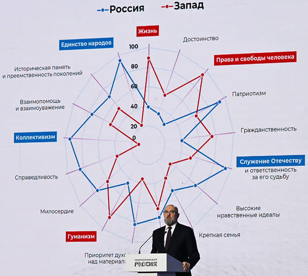 - Где-то между ними (около 50 баллов) расположился «гуманизм». Индивидуалистские ценности «у нас тоже есть», оговорился чиновник, но «не они возглавляют рейтинг».