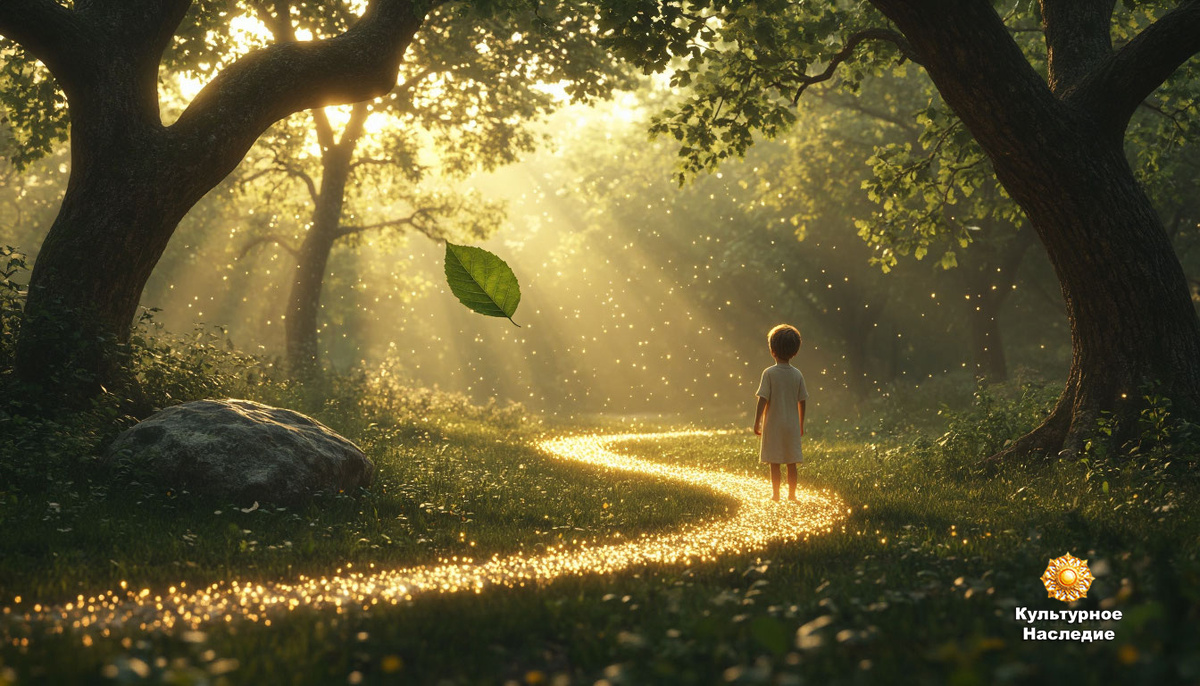 Садитесь ближе к огню, дети и взрослые. Пусть трещит полено, пусть дымок вьётся к звёздам, как молитва без слов. Сейчас я расскажу вам сказку не из книг, а из тех, что шепчут сосны на закате, что помнят камни у ручья, что видят глаза старого волка в глубине леса. Это не сказка о битвах и тронах, а о том, как одно малое чудо — лист, сорвавшийся с ветки — может повести за собой целый род. Слушайте тихо. Сердцем. Потому что, может быть, и вы — уже часть этой сказки. Сказка: «Лист, что завертелся в ветре» Давно-давно, когда леса ещё говорили с людьми на одном языке, а реки помнили имена всех, кто пил из них, жил на краю дремучего бора малый род. Не великий, не богатый. Жили просто: пахали землю, пасли скот, чтили отцов и матерей, слушали шёпот ветра в осине. Не было у них ни храмов из камня, ни писаных законов. Был только огонь посреди хаты, ладанка с семенами пшеницы и вера — не слепая, не крикливая, а тихая, как роса на траве. Однажды, в пору, когда солнце стоит высоко, а тени коротки, к
