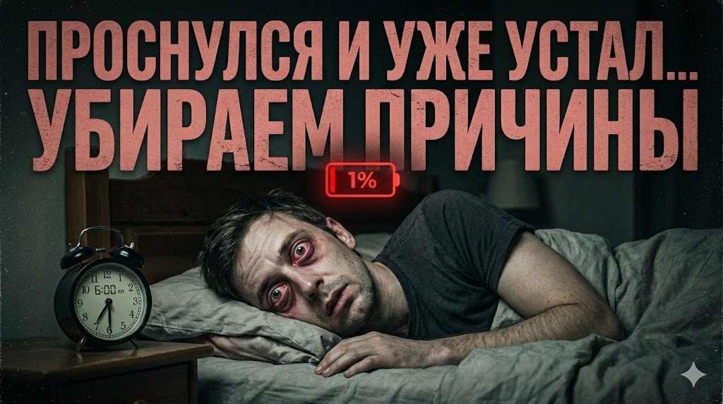 Звенит будильник. Ты открываешь один глаз, потом второй, и первое, что ты чувствуешь — это вселенская тяжесть. Твоя тушка весит тонну. Такое ощущение, что пока ты спал, тебя всю ночь пинали гномы-садисты. Или что ты разгружал вагоны с углем, хотя на деле ты просто лежал лицом в подушку. Знакомо? Конечно, такое бывает с каждым, но пора бить тревогу, если это стало проявляться на постоянной основе. Это состояние называется «Встал и уже устал». Особенно это знакомо тем, кто любит прибухнуть. Но сейчас, в эпоху цифрового разврата, даже трезвенники чувствуют себя как пожеванные мочалки. Давайте разберем, какого чёрта происходит с вашим организмом, пока вы пытаетесь собрать себя в кучу. День сурка и состояние "зомби" Давайте я опишу ваш типичный день, и вы, скрипя зубами, узнаете в нем себя.