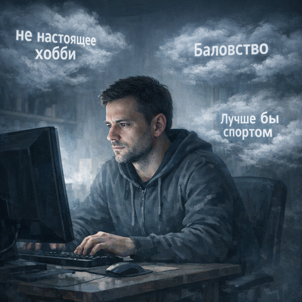 Есть вопрос, который почему-то всегда звучит с подвохом: "Ну а хобби у тебя есть?". И если ответить честно - "вечером играю за компом" - почти всегда ловишь паузу. Такую неловкую. Как будто ты сказал что-то не то.