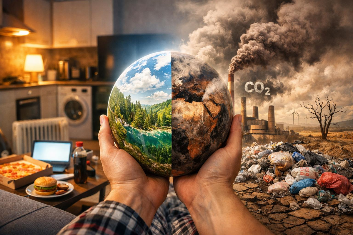 Когда я утром нажимаю кнопку кофемашины, я не думаю о бурых ледниках или тающих айсбергах. В моей голове только аромат зерен и планы на день, но в этот момент невидимый счетчик планеты делает очередной оборот. Мы живем в эпоху, где каждое наше движение оставляет «выхлоп», и этот хвост тянется за нами всю жизнь. Углеродный след - это не абстрактная цифра из новостей, а реальный вес газа, который мы лично отправили в небо.