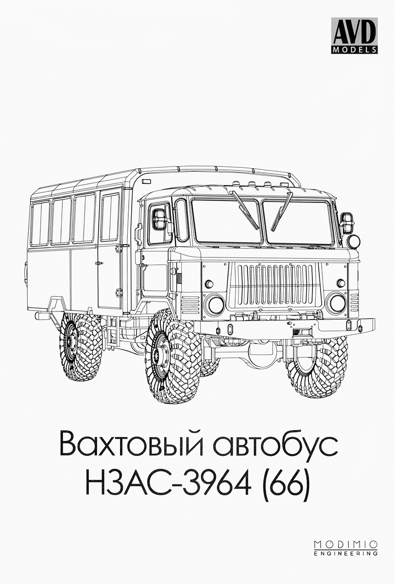 1383AVD Сборная модель вахтовый автобус НЗАС-3964 (66).
