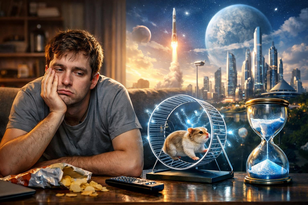 В результате реальные, сложные цели начинают казаться пресными и неподъёмными. На фоне ярких вспышек от соцсетей кропотливая работа над проектом выглядит как попытка разжечь костёр в сыром лесу. Ваш мозг не хочет «сложного» дофамина, который придёт через год. Он хочет «быстрого» здесь и сейчас, потому что для него будущее - это неопределённость, а настоящее - реальный шанс забалдеть.