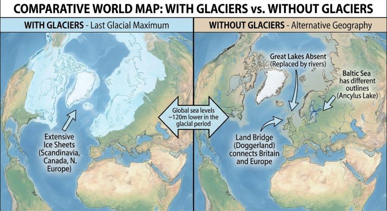 Ледниковые периоды — одни из самых мощных сил, формировавших облик современной Земли. За последние 2,6 миллиона лет наша планета пережила несколько крупных оледенений, последнее из которых завершилось около 11 700 лет назад. Но что было бы, если бы эти гигантские ледяные щиты никогда не покрывали континенты? Давайте исследуем этот альтернативный сценарий.