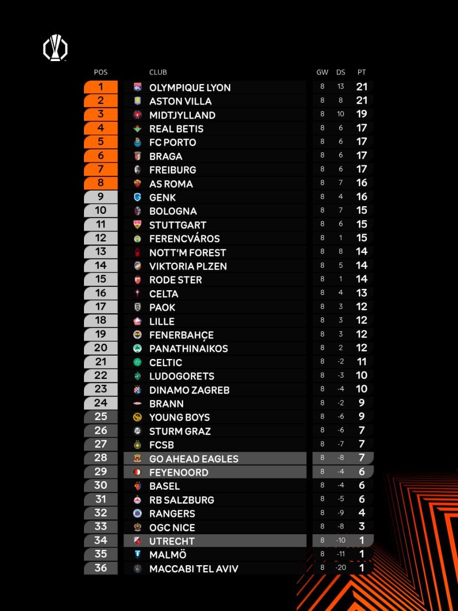 ? ⚡️ В верхней части турнирной таблицы практически все удержали свои позиции. Близка к провалу была «Рома», но гол вдесятером спас римлян от вылета из восьмерки лучших 🔝 Внизу чуть интереснее: «Селтик» и «Лудогорец» сумели ворваться в топ-24, в то время как «Янг Бойз» остались за бортом 💔