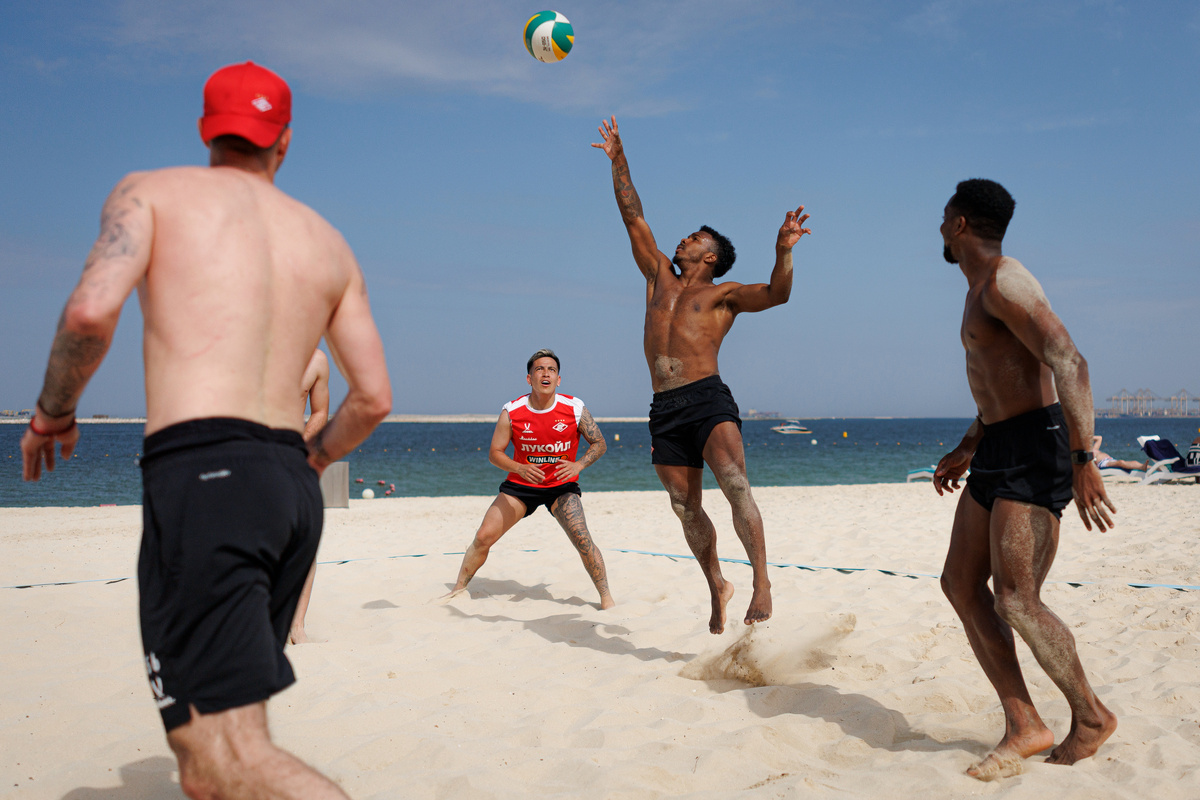 Вчера на пляже Дубая кипело море, и горел песок! Зажигал весь «Спартак» во главе с главным тренером и директоратом. Такого рода занятия не новация, и в предыдущие годы спартаковцы проводили занятия на песке. Соревновались две команды игроков, но в некоторых состязаниях как перетягивание каната принял участие и тренерский штаб. Только это и помогло «синим» разок победить «голых». Помимо этого играли в текбол. Это игра на изогнутом теннисном столе футбольным мячом. Само собой был пляжный волейбол и регби. И еще две эстафеты: «сухопутная» и водная. В общем зачете победили «голые». На этом фото команда победителей в составе Зобнин, Довбня, Барко, Рябчук, Саусь, Гарсия, Дмитриев, Заболотный, Маркиньос, Ву, Джику, Литвинов и Сорокин. Жедсон также есть на фото, но он был замечен в другой команде. Примазался, хитрец! Естественно настроение великолепное, ну а какое еще может и должно быть на море в это время года и в такой компании? Верно, проскочила легкая грустинка и крупинка зависти, но и